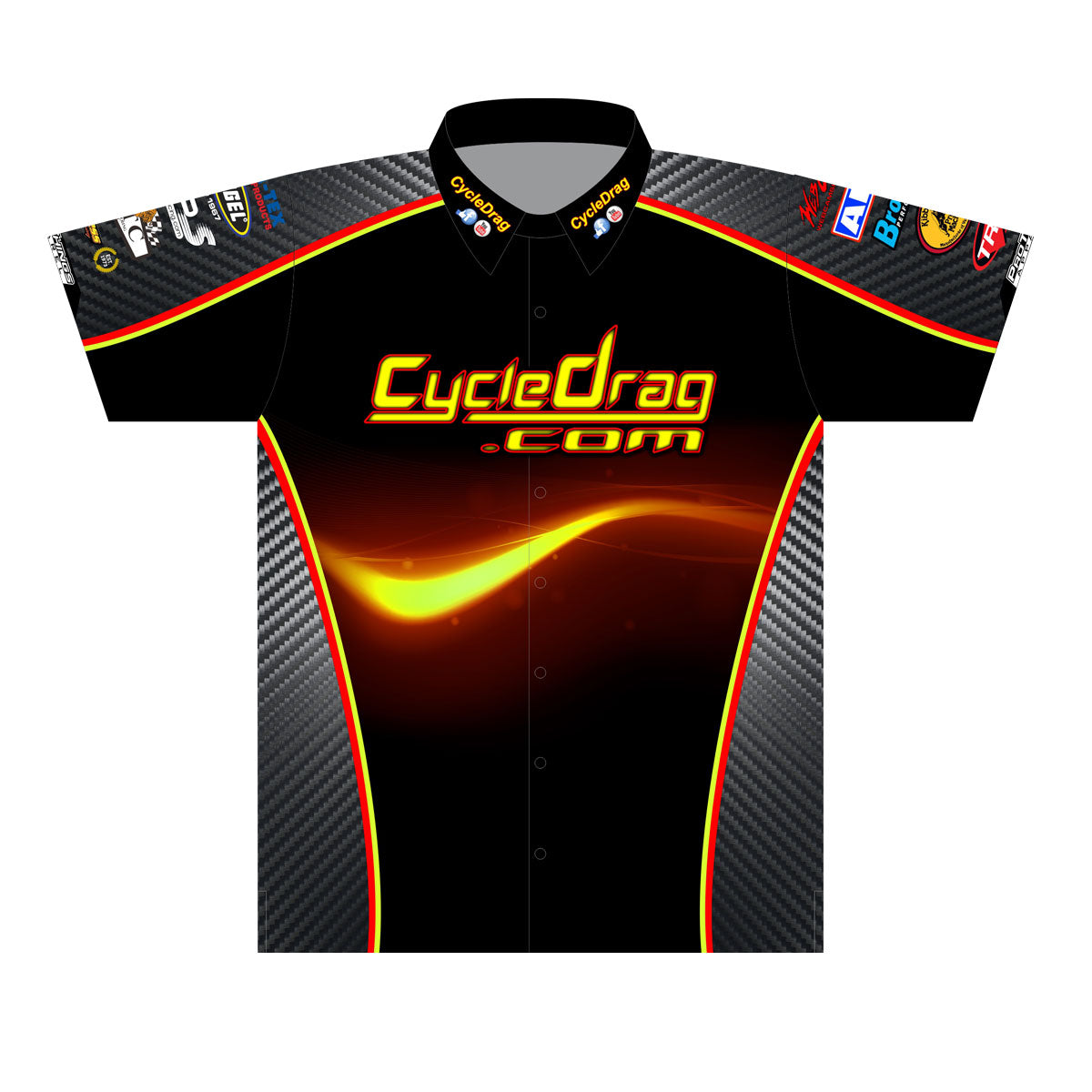 Show you are a part of Cycledrag Universe with this official button-up, collared Cycledrag Team Uniform. Made from 100% polyester knit, moisture-wicking performance fabric.